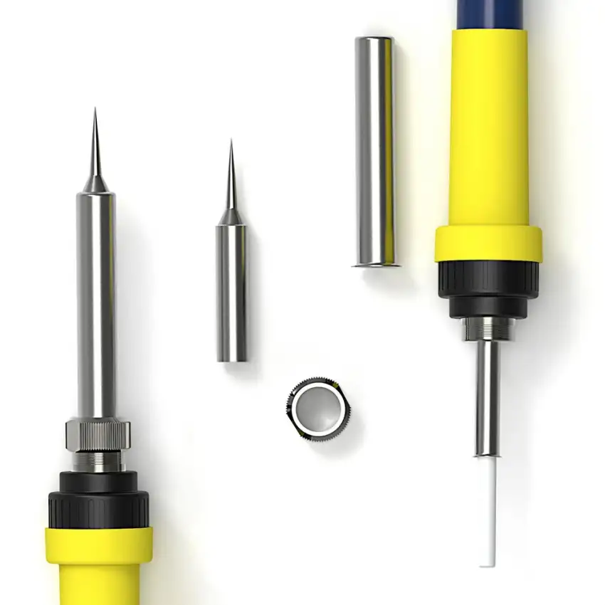 Der Lötkolben verfügt über eine einstellbare Temperaturregelung, mit der Sie die Temperatur an die spezifischen Anforderungen Ihres Projekts anpassen können. Ebenso bietet die Heißluftpistole einstellbare Temperatur- und Luftstromeinstellungen, sodass Sie ihre Leistung für optimale Leistung anpassen können.