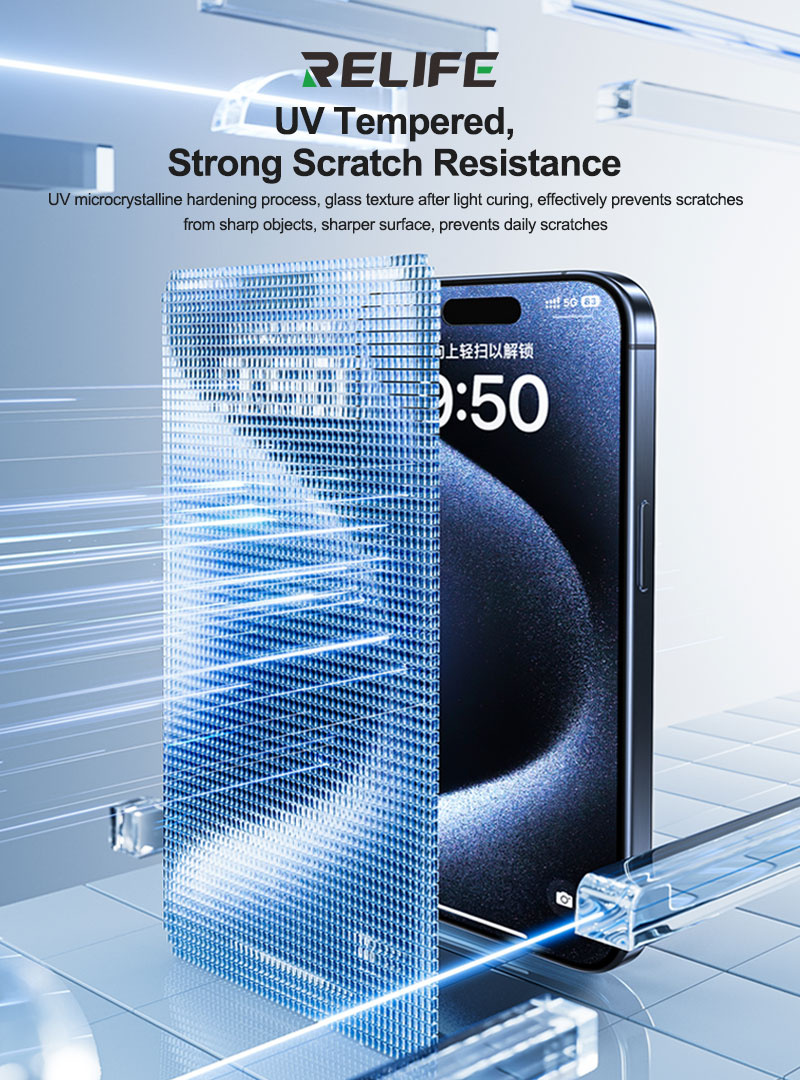 2.UV microcrystalline hardening process, glass texture after light curing, effectively prevents scratches from sharp objects, sharper surface, prevents daily scratches.