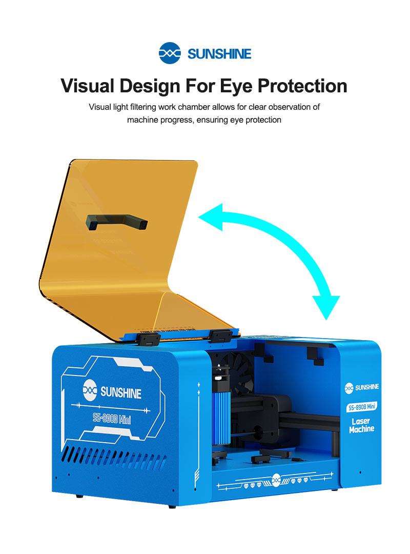 3.Visual light filtering work chamber allows for clear observation of machine progress, ensuring eye protection.